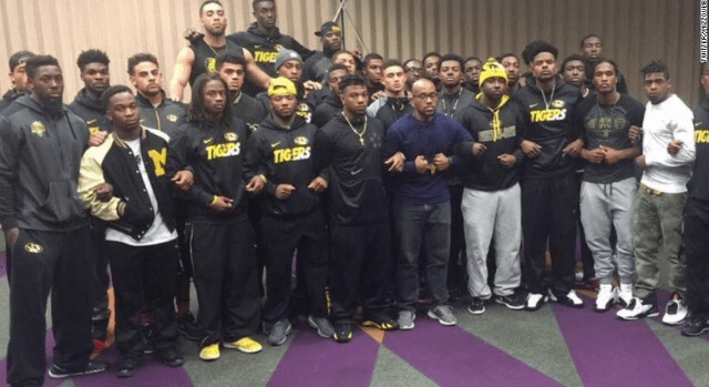 “Student protests over racial incidents at the University of Missouri escalated over the weekend when at least 30 black football players announced they will not participate in team activities until the university system’s president is removed.”