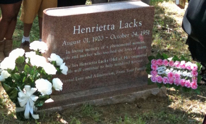 She was buried without a tombstone in a family cemetery in Lackstown. It was the name of the land that had been held by the black Lacks family since they received it from the white Lacks family, who had owned the ancestors of the black Lacks when slavery was legal. In 2010, Dr. Roland Pattillo of the Morehouse School of Medicine donated a headstone for Lacks after reading “The Immortal Life of Henrietta Lacks.”