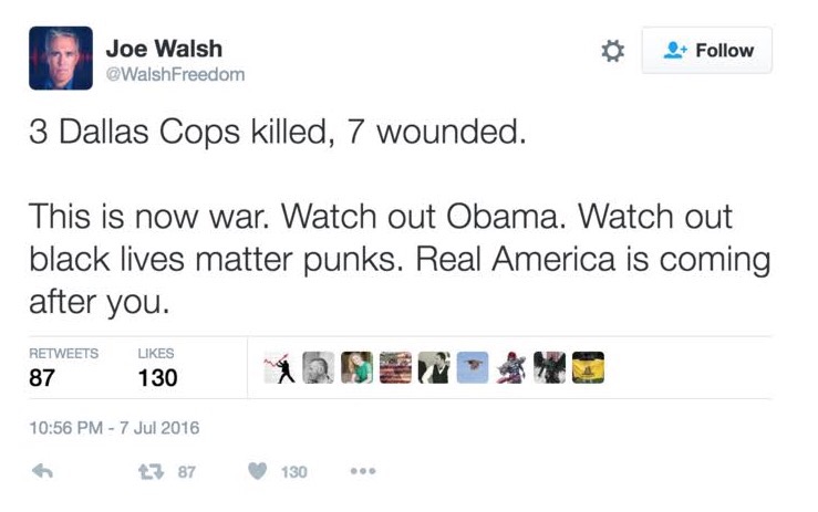 It was traumatizing to his son, it was un-American, it was disrespectful. It was ALL OF THAT. I AM AGREEING WITH YOU. *wait for it* BUT this has been happening. Where was your American pride and respect when it was done to Obama? Oh wait. Y’all didn’t like him, so it doesn’t count right? It doesn’t matter that individuals had him swinging from a noose holding a watermelon. It didn’t matter that individuals were threatening his family. Calling them monkeys. No one was concerned with the mental state of his children or wife. No big deal right? “Oh but Dez, it wasn’t a celebrity or a public figure with a lot of followers doing it to Obama. It was a bunch of nobodies making idle threats.” Well first and foremost a threat is a threat, it shouldn’t matter if it’s a celebrity or not. But since you all seem to have amnesia let me drop a dime, Ted Nugent said he would chop Obama’s head off if re-elected. Where was the outrage? He was still the president. It was disrespectful, his children saw it, but no one was concerned for them. Former Republican Congressman posted: