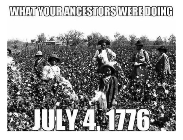 The Declaration of Independence states, “We hold these truths to be self-evident, that all men are created equal, that they are endowed by their Creator with certain unalienable Rights, that among these are Life, Liberty, and the pursuit of Happiness.” While that is all fine and dandy, slavery was still legal in the 13 colonies so that means a percentage of the population were still in bondage. Still being raped, tortured and forced to work for the bare minimum or nothing at all. No sign of true liberty or happiness. Just a figment or their imagination. In fact, half the individuals who signed the Declaration were either slave holders, shippers or investors. So there was no way that all men were created equal. Thomas Jefferson, the primary drafter, the had 175 black women, men and children enslaved in 1776. By 1822 the number had grown to 267. Though individuals refer to Sally Hemings as Thomas Jefferson’s mistress, let’s be real clear on what she really was. She was a 14 year old child, his property, that he raped and impregnated seven times.