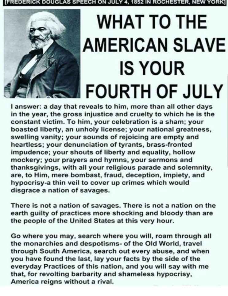 Though this all occurred many years ago, it is still a part of us. This was our oppressors independence and if you choose not to celebrate it so be it. If you choose to celebrate it, so be it. Just don’t be misguided by the false information or lack of truth in the history we are so often taught. With blood still wet on the streets, I don’t turn my nose up at anyone who chooses not to celebrate July 4th. That’s your right. We’ve grown so accustomed to ostracizing individuals for being different instead of accepting them as they are. Even if you don’t agree with their beliefs, it is still easy to coexist. Yeah we may no longer have the “No Coloreds Allowed,” signs up anymore but the system still has a long way to go regarding equal treatment. We have individuals born and raised on American soil, but still are alienated to this very day. That’s all for another day though. I type all of this to say, stand up for what you believe in. People may not like it, people may hate you for it, but to stay true to yourself is the most fulfilling.